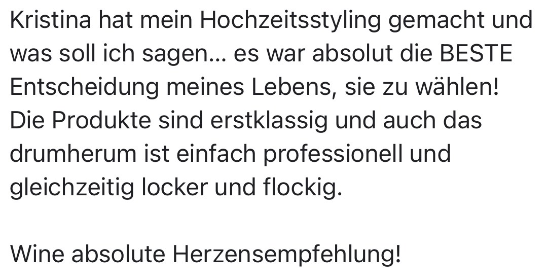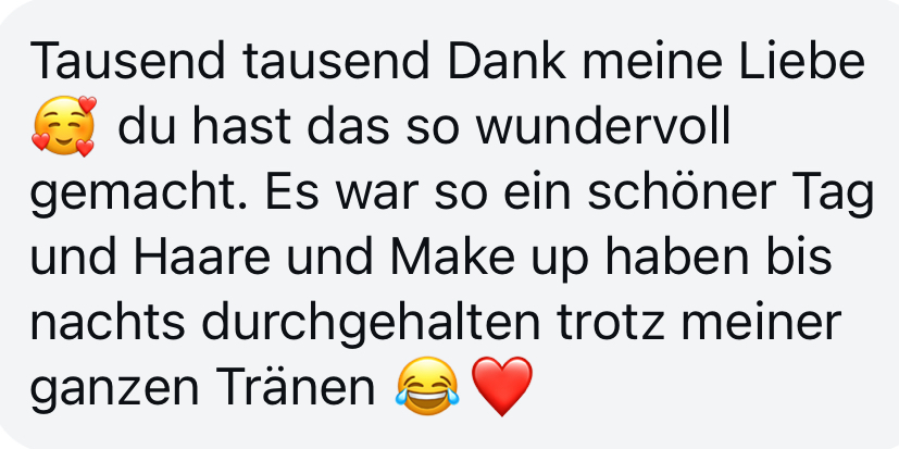 Mit viel Feingefühl, Ruhe und Liebe zum Detail begleite ich euch an eurem Hochzeitstag und sorge dafür, dass euer Brautmorgen entspannt, unvergesslich und voller Schönheit ist.